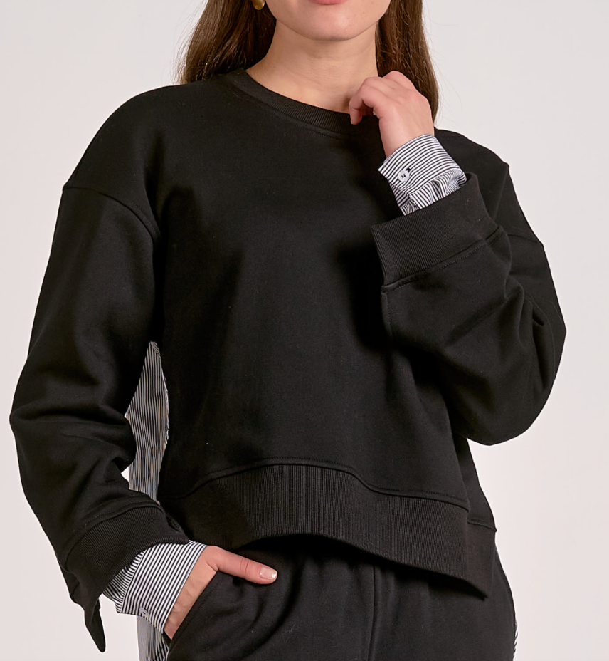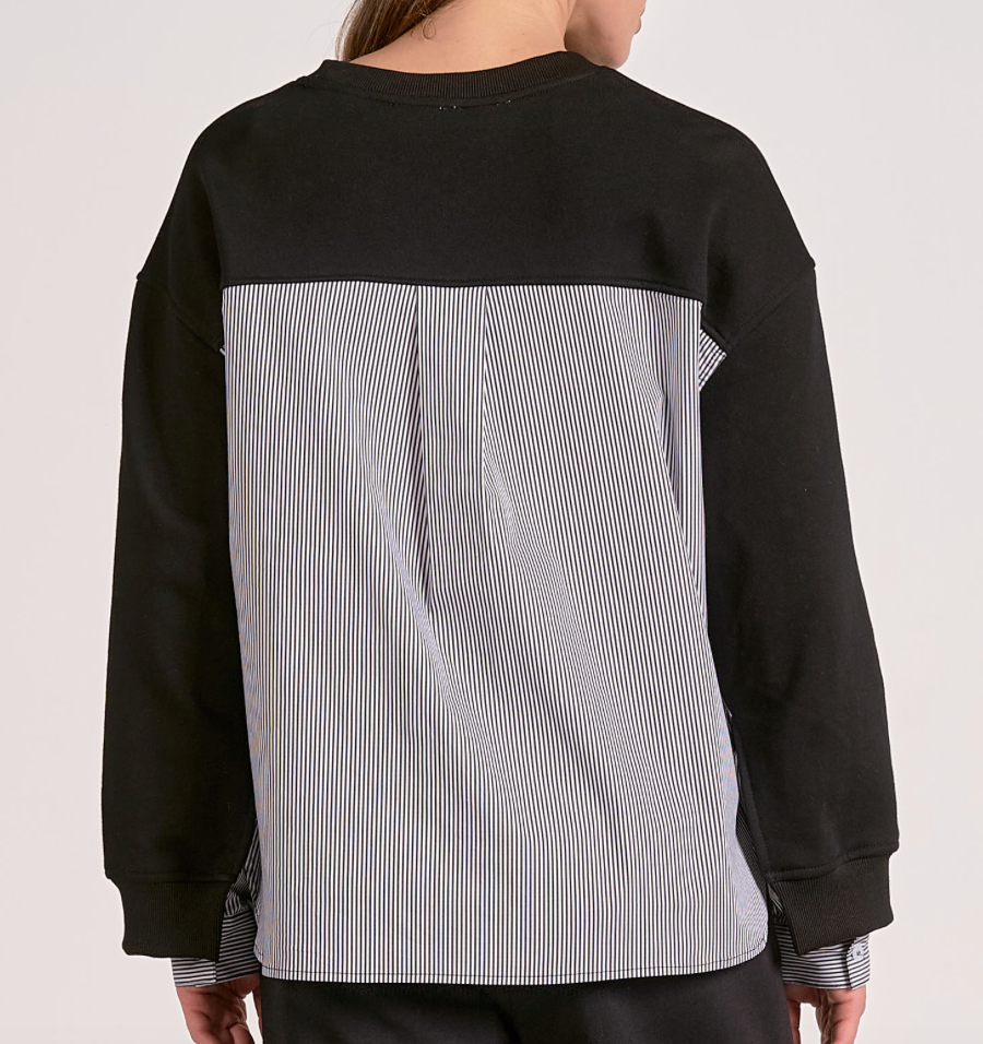 Mixed media sweatshirt with stripe back