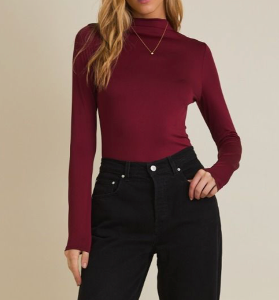 Burgundy mock neck long sleeve body suit