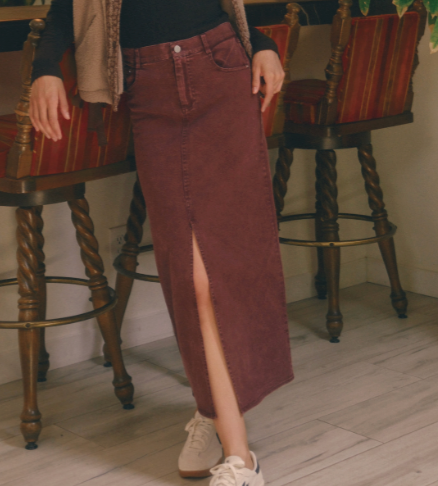 Elastic waist twill maki skirt with pockets