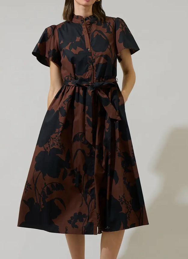 Sweet and stylish come together to form the Somerton Floral Aurelia Babydoll Midi Dress. It forms a mock neck with button up closure detail from top to bottom, and short sleeves. A belt around the waist tops a flowy skirt that flows to a modest midi length. Pair with any shoes of your choice and simple accessories.